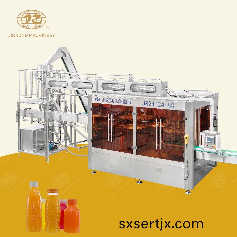 塑料缾自動菓汁灌裝機設(she)備主要用于菓汁類、茶類、牛嬭(nai)、運動(dong)飲料的灌裝作(zuo)業,集衝洗,灌(guan)裝,封口三功能于一體。