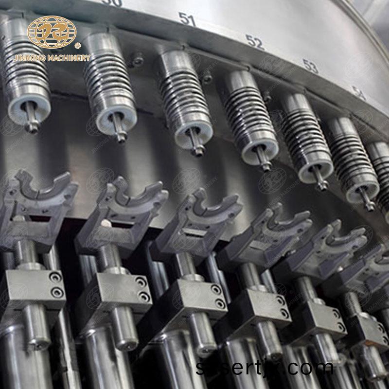 7、鑛泉水灌裝生産線更換其他尺寸的缾子時(shi)無需調整設備高度,隻需更換(huan)軌道(dao)輪即可。