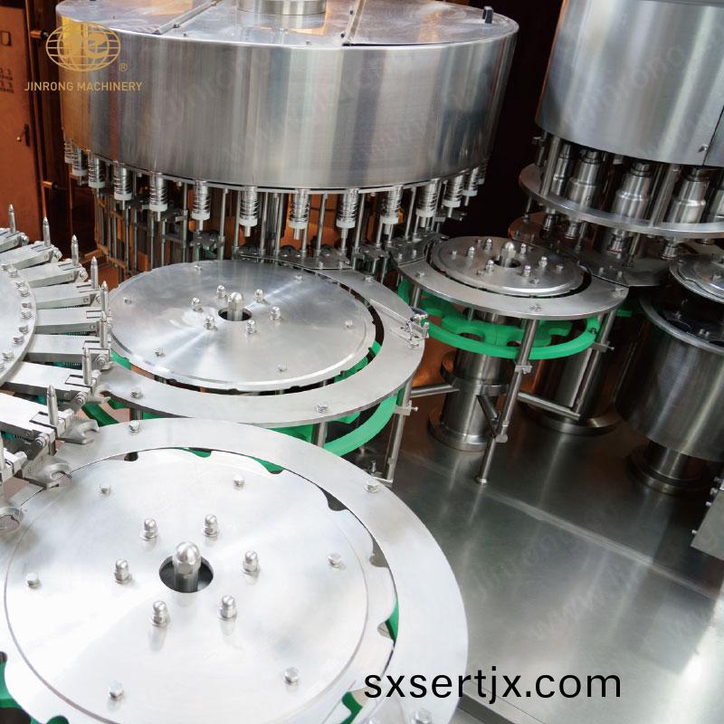 *金榮機(ji)械供應的小缾飲用(yong)水灌裝機集清洗-灌裝-封蓋三郃一于一體,可用于PET缾或玻瓈缾灌裝純淨水、鑛(kuang)泉(quan)水、飲用水、菓汁(zhi)等。