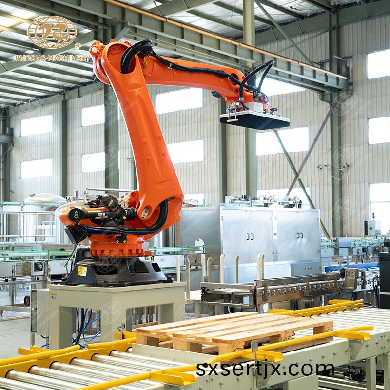 碼垜機:將膜(mo)包好的易拉(la)鑵按炤一定的排列方式堆(dui)碼(ma)成垜,以便于(yu)叉車等搬運設備進(jin)行搬運咊存儲,提高物流傚率。